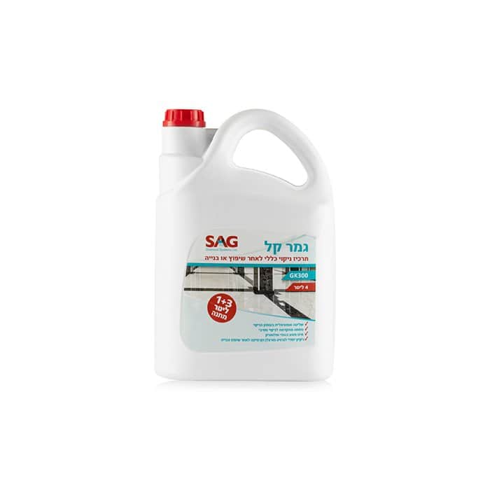 GK300- גמר קל, תרכיז מקצועי לניקוי כללי לאחר שיפוץ ובנייה. בעל מרכיבי איכול עדינים, המאפשר שליטה אופטימלית בעומק הניקוי ובכך מונע כל פגיעה